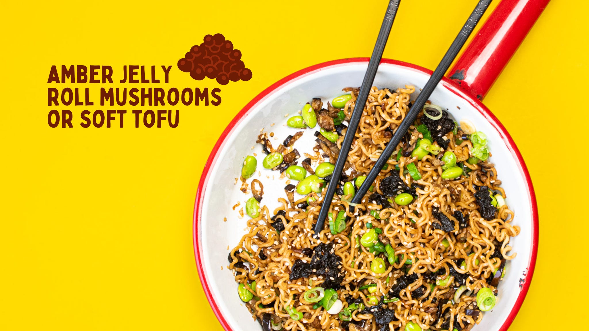 Amber jelly roll mushrooms take on the flavor of whatever liquid they hydrate in, making them one of the most versatile ingredients in the forager’s pantry. They have a tender, silky texture with a slight bounce that brings textural diversity to any pan of noodles or crispy veg. This recipe pairs them with a classic ramen packet, frozen edamame, and pantry spices, so you can make it in the winter without leaving your house.